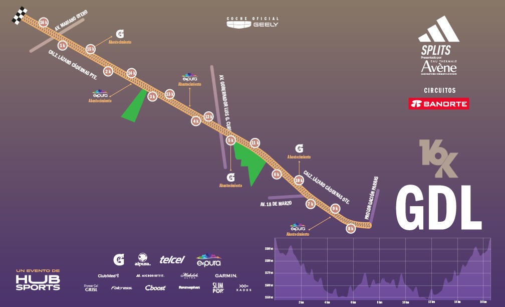 En este año, miles de corredores recorrerán una de las avenidas más importantes de Guadalajara. En esta ruta vivirán la energía y adrenalina que generan los adidas splits corriendo una de las distancias más deseadas de este aclamado serial la cual consta de 16K.